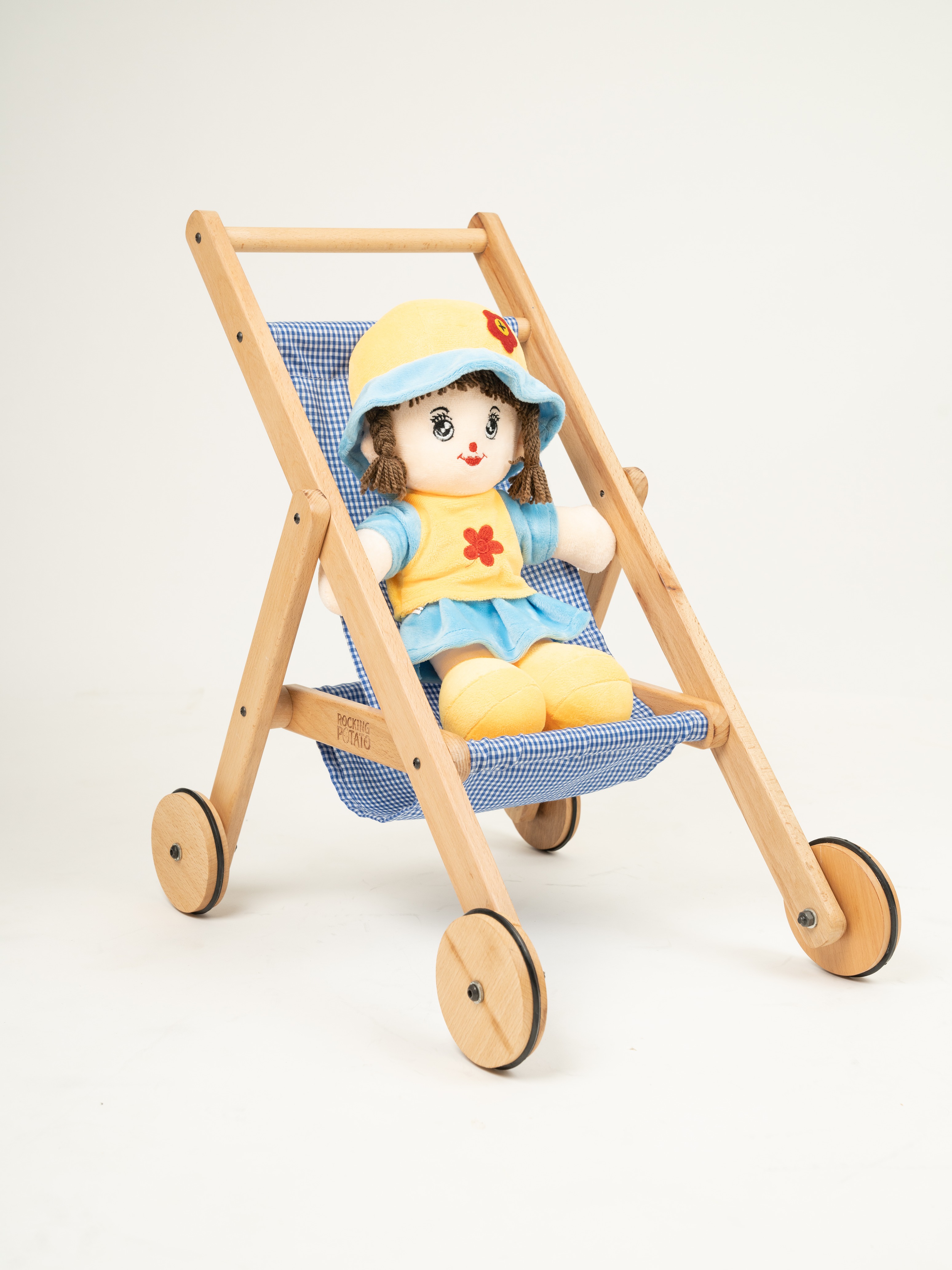 Wooden Doll stroller- Blue